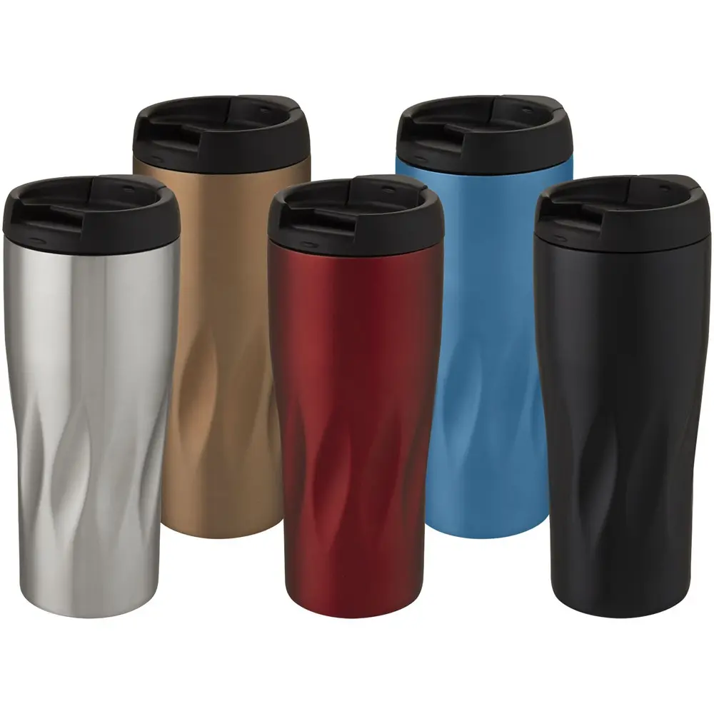 Ontdek deze hoogwaardige dubbelwandige vacuüm geïsoleerde beker, ideaal voor uw marketingcampagnes en events. Met een golvend geometrisch ontwerp biedt deze beker een stijlvolle uitstraling die uw merk versterkt. De koperen vacuümisolatie in combinatie met 18/8 roestvrij staal zorgt ervoor dat uw dranken tot wel meerdere uren warm of koud blijven, perfect voor langdurig genot tijdens bijeenkomsten of promotionele acties.