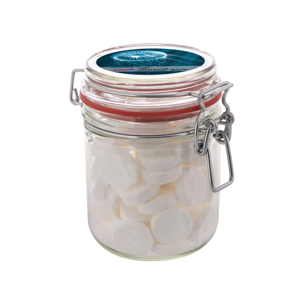 - Onvergetelijke indruk: De heerlijke snoepjes zorgen voor een glimlach bij je klanten, terwijl het herbruikbare glazen potje langdurig reclame maakt.