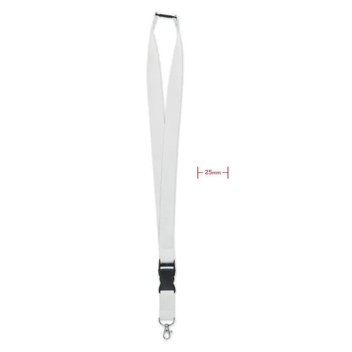 Ontdek onze Wide Lany - Lanyard 25 mm, ideaal voor uw marketingacties en events. Deze lanyard is vervaardigd uit stevig POM-materiaal en uitgerust met een metalen karabijnhaak en veiligheidssluiting. Dankzij de kunststof clip kunt u het onderste deel eenvoudig losklikken voor optimaal veiligheidscomfort.