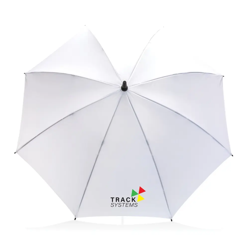 Ideaal voor uw marketingcampagnes of events: personaliseer deze paraplu met uw logo voor een blijvende indruk bij klanten. De duurzame eigenschappen versterken uw bedrijfsimago als milieubewust. Bestel in grote hoeveelheden voor effectieve promotie, zonder compromis op kwaliteit. Voldoet aan richtlijnen zoals REACH, cadmium- en loodgehaltes, PAHS en phthalaten, plus vrij van gechloreerde paraffines.