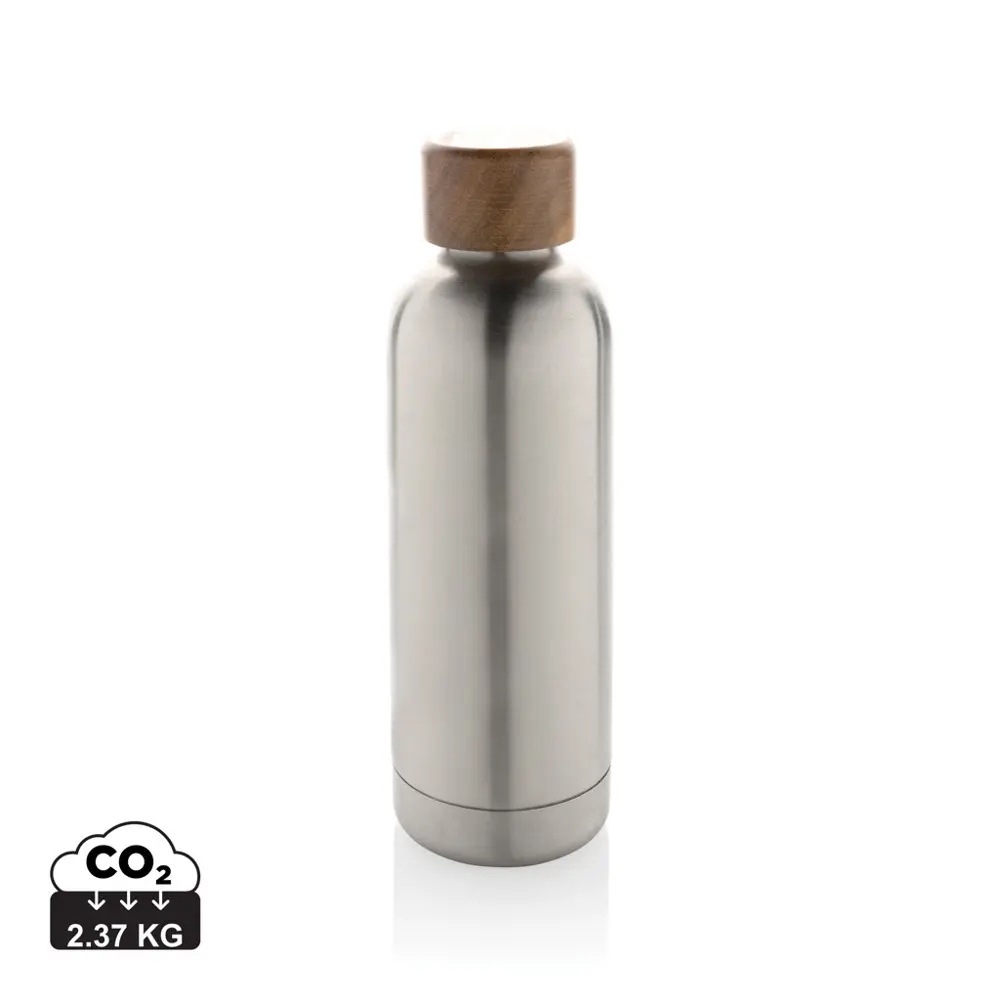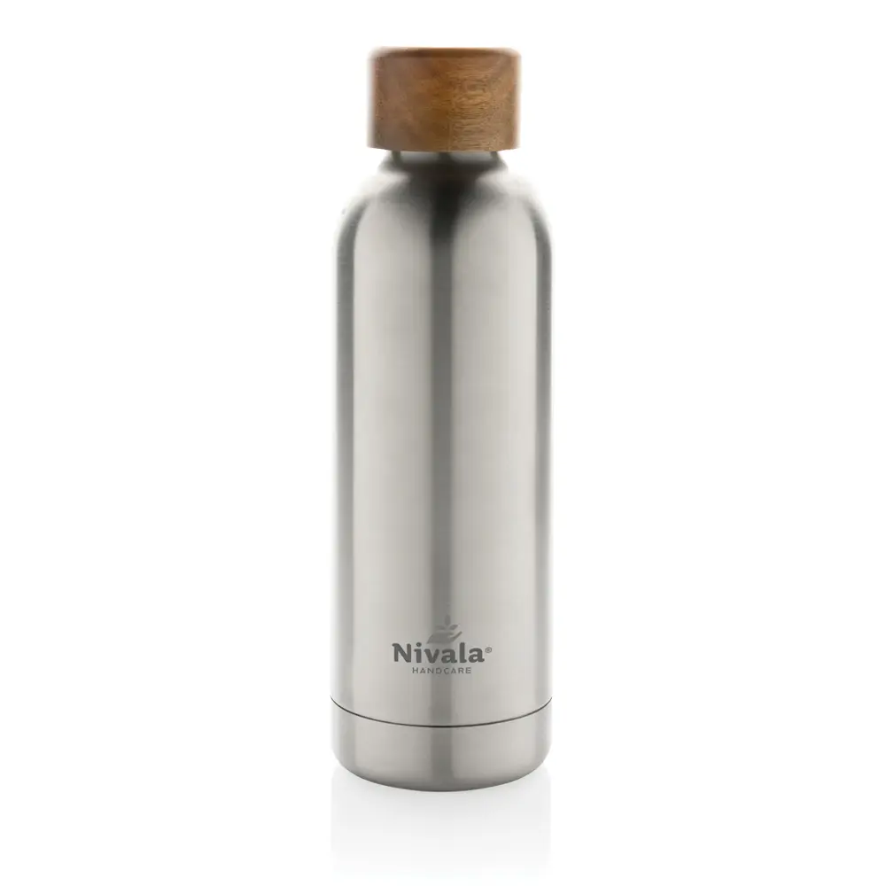 Ontdek de Wood vacuümfles als ideaal gepersonaliseerd relatiegeschenk voor uw marketingcampagnes of events. Deze dubbelwandige roestvrijstalen fles van gerecycled materiaal houdt uw drankje tot 5 uur warm en tot 15 uur koud, ideaal voor de hele dag hydratatie. Met 88% gerecyclede inhoud en RCS-certificering voldoet deze BPA-vrije fles van 500 ml aan strenge duurzaamheidsnormen, terwijl de acaciahouten deksel een natuurlijk accent toevoegt.