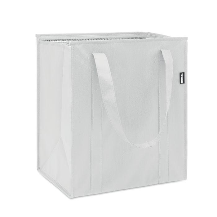 Koeltas in RPET nonwoven 80gr/m². Isolatiemateriaal: aluminiumfolie. Inhoud: 25L. Hoofdcompartiment met ritssluiting aan de bovenzijde en verwijderbare PP bodem versteviging.