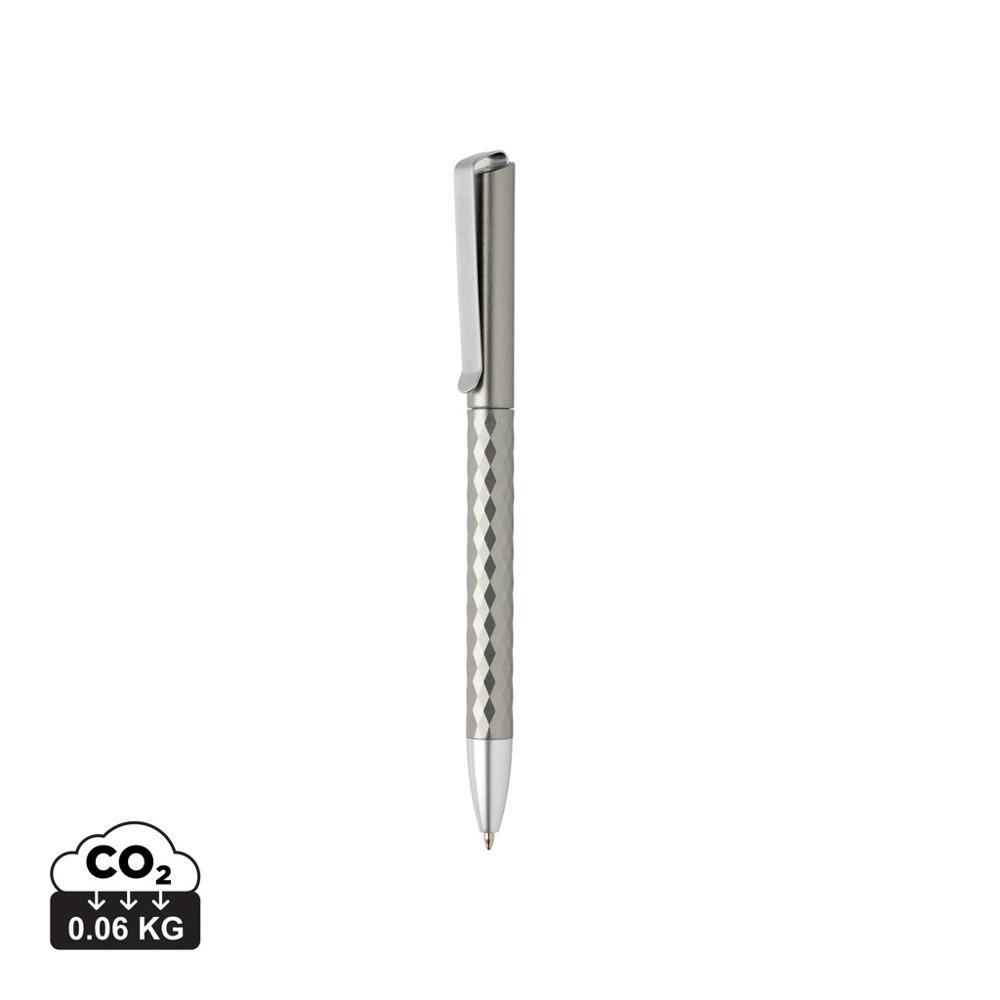 Unieke balpen met metalen clip met fascinerend diamantpatroon. Inclusief Duitse Dokumental® inktvulling in blauw (ca. 1200 m schrijflengte) met TC-ball voor ultra-vloeiend schrijfplezier. De pen is vervaardigd uit 38% gerecycled ABS.