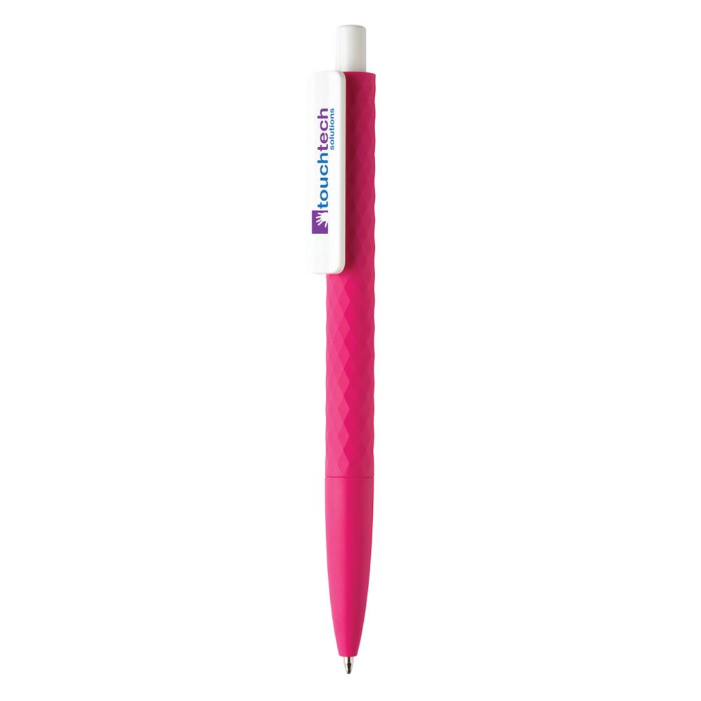 Uniek ontwerp balpen die zich onderscheidt door het geometrische patroon. Vernieuwde versie met smooth touch coating voor extra schrijf comfort. Inclusief Duitse ca. 1200m schrijflengte Dokumental® blauwe inkt vulling met TC-ball voor ultra vloeiend schrijfplezier. De pen is vervaardigd uit 83% gerecycled ABS, gecertificeerd voor duurzaamheid.
