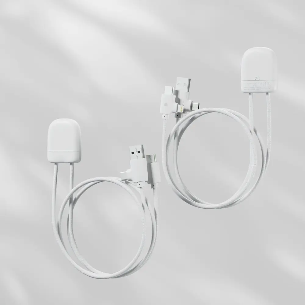 Met dubbele invoerpoorten (USB-A en Type-C) en uitvoerpoorten (Lightning en Type-C) sluit u deze kabel aan op diverse smartphones, tablets en accessoires. Deze flexibiliteit zorgt ervoor dat uw klanten tijdens events of op kantoor altijd voorbereid zijn, zonder compatibiliteitsproblemen. Personaliseer de kabel met uw logo om uw merk subtiel te promoten bij elke aansluiting.