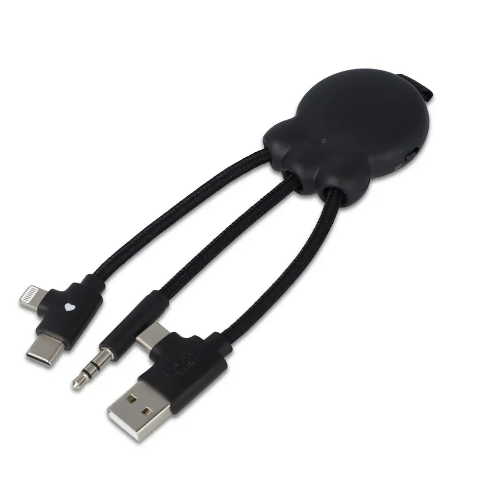 De Xoopar OctopusFly Audiozender is een innovatief en veelzijdig relatiegeschenk voor uw marketingcampagnes en events. Met de TX-functie zendt u eenvoudig audio door van bronnen zoals vliegtuigsystemen of fitnessapparatuur naar draadloze oordopjes, zonder kabels. De RX-functie transformeert bedrade speakers in draadloze alternatieven, ideaal voor mobiele promoties. De ingebouwde batterij biedt tot 8 uur speeltijd, terwijl dubbele adapters brede compatibiliteit garanderen met diverse apparaten.