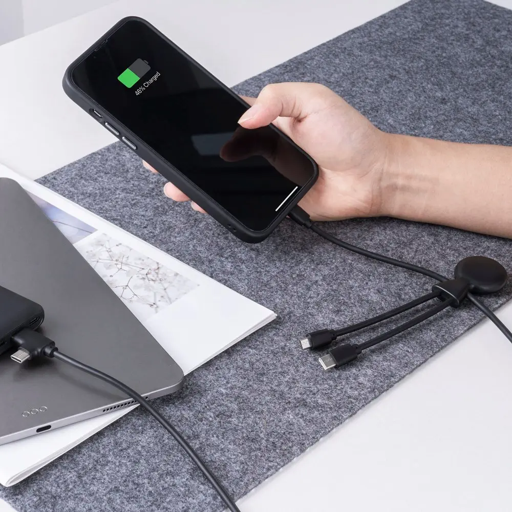 Met deze oplaadset toont u uw engagement voor duurzaamheid, wat perfect aansluit bij de waarden van hedendaagse bedrijven. De powerbank laadt een smartphone tot 2,5 keer op, zodat uw ontvangers altijd verbonden blijven tijdens events of dagelijks gebruik. De multi-oplaadkabel ondersteunt USB, Lightning, Type-C en Micro-USB, en is compatibel met de meeste apparaten. Personaliseer de set met uw logo voor een blijvende reclame-impact – uw merk blijft zichtbaar bij elke oplaadbeurt.