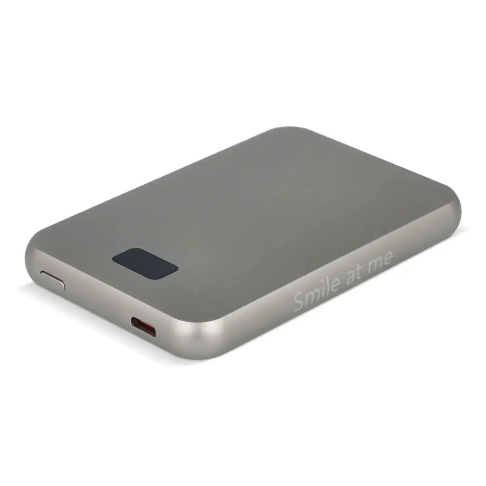 Deze powerbank is ultra-slank met slechts 9 mm dikte en weegt maar 112 gram, ideaal voor onderweg of tijdens events. De geïntegreerde spiegel aan één zijde voegt praktisch nut toe, zodat u zich snel kunt opfrissen. De inclusieve USB-C kabel maakt het meteen gebruiksklaar, zonder extra accessoires nodig te hebben.