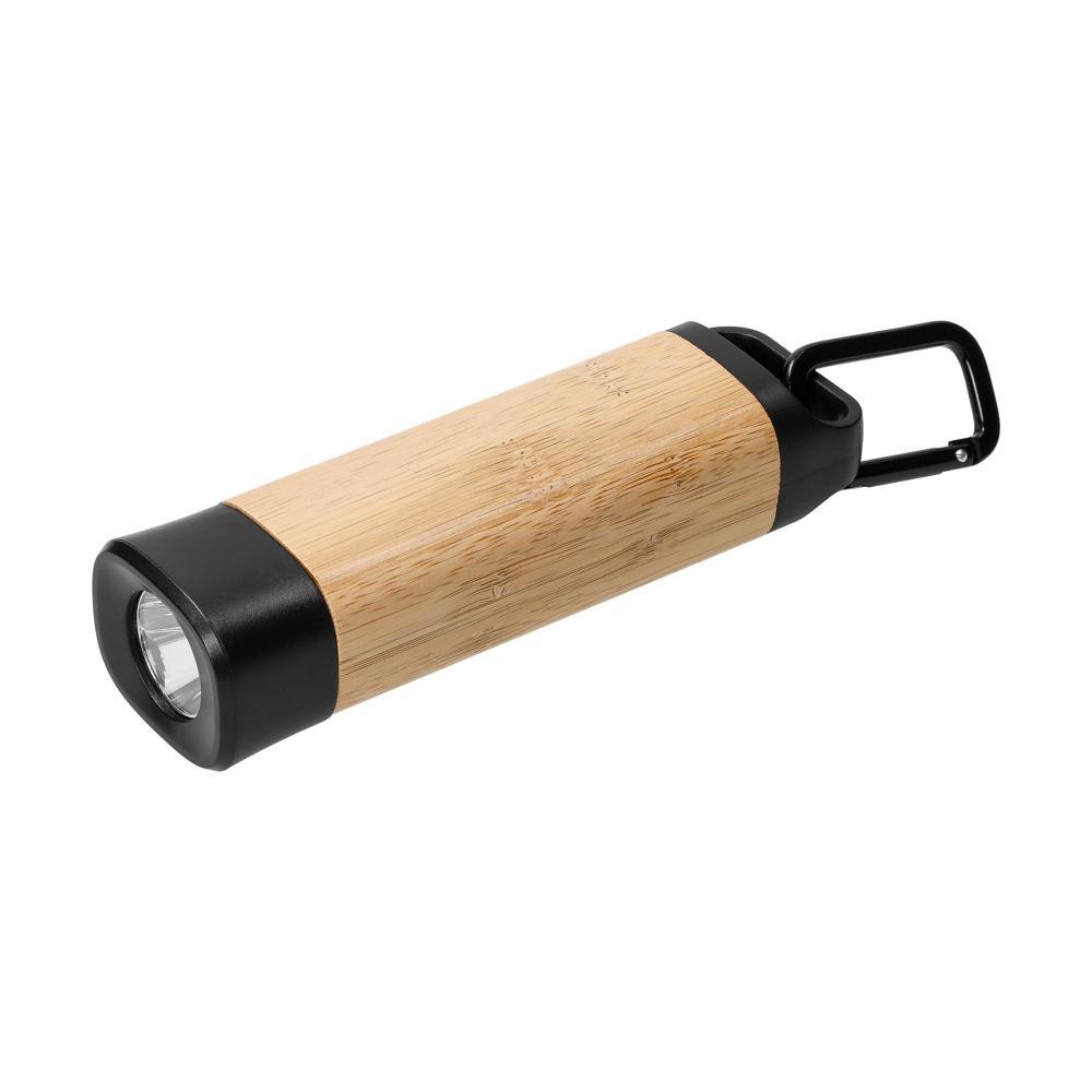 Je ontvangt een stijlvolle zaklamp van bamboe met krachtige 120 lumen verlichting en drie lichtfuncties: ideaal voor elke situatie, van donkere events tot dagelijks gebruik. Het praktische handvat en de oplaadkabel maken hem superhandig voor buitenavonturen of noodgevallen.
